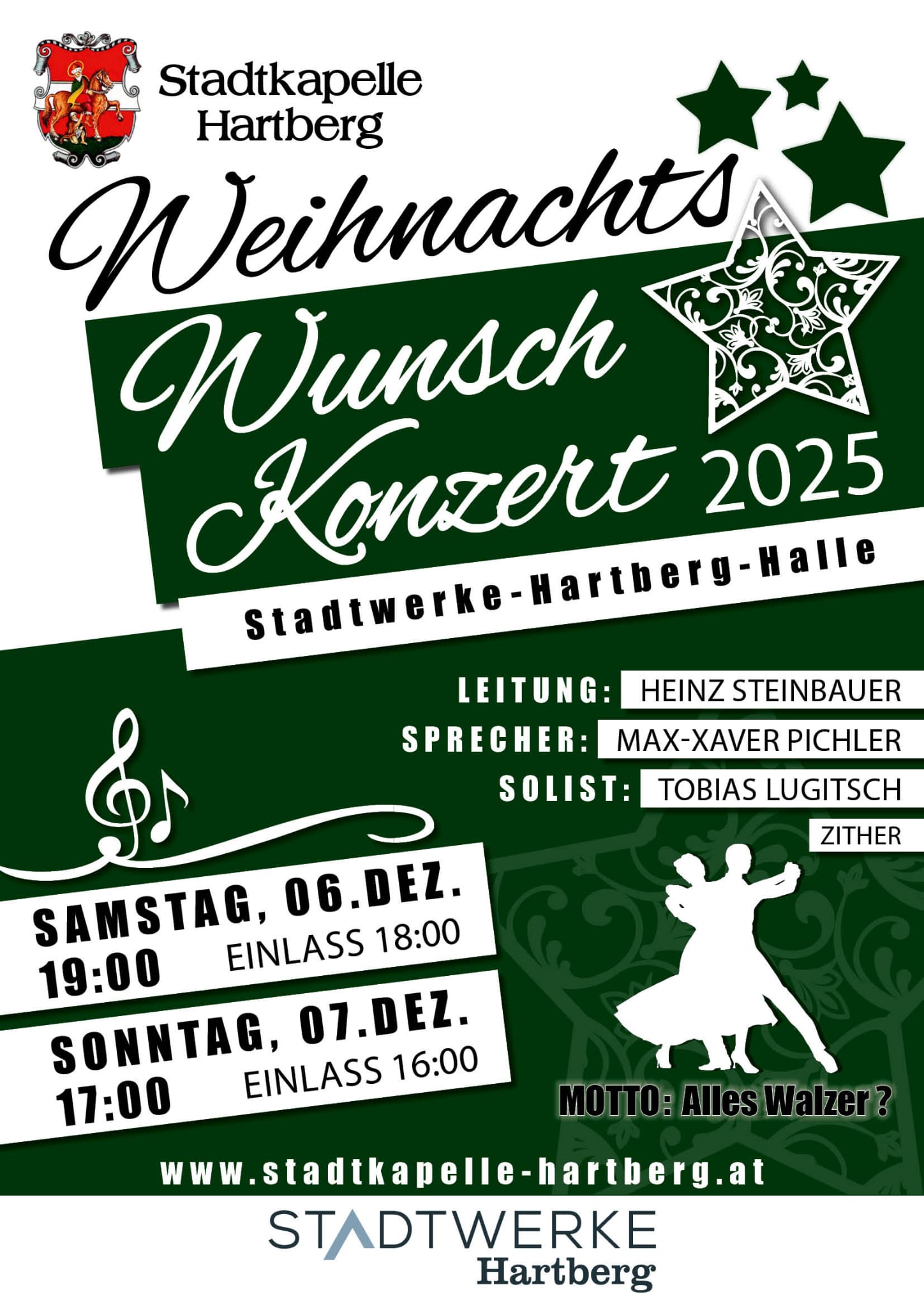 Herzlich Willkommen auf der Website der Stadtkapelle Hartberg. Lernen Sie den Kapellmeister sowie die Musikerinnen und Musiker kennen, werfen Sie einen Blick in unsere Chronik und erfahren Sie alle wichtigen News und kommenden Auftrittstermine. Wir laden Sie auf eine musikalische Reise in eine besondere Region der Oststeiermark ein.